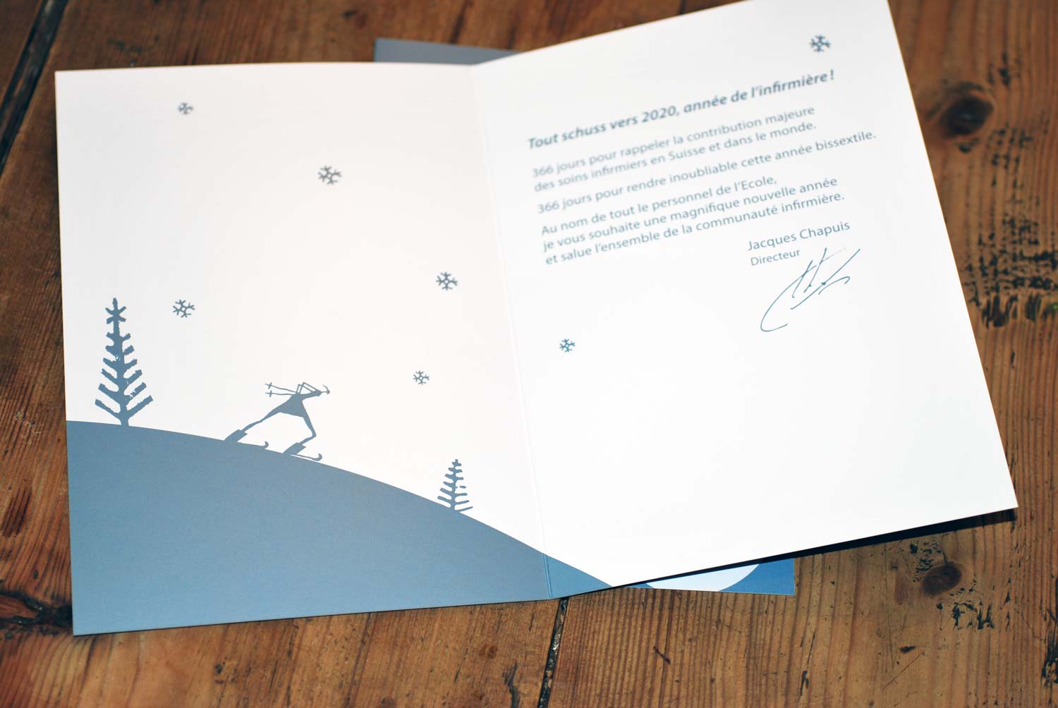 Carte de vœux version papier et version animée (cliquez ici) pour la Haute Ecole de la Source